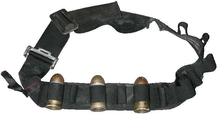 This bandolier was used in later scenes of the movie. It's distressed and has only three M-79 grenades left.