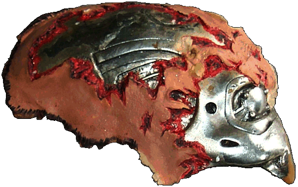 Arnie's prosthetic face makeup stage 5/6, made of various materials, not shown is the cable for the LED.
